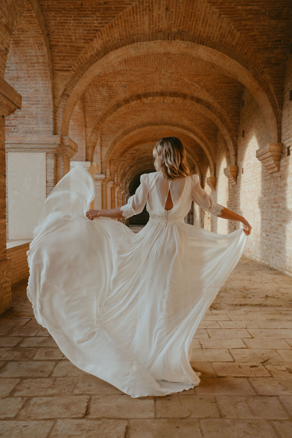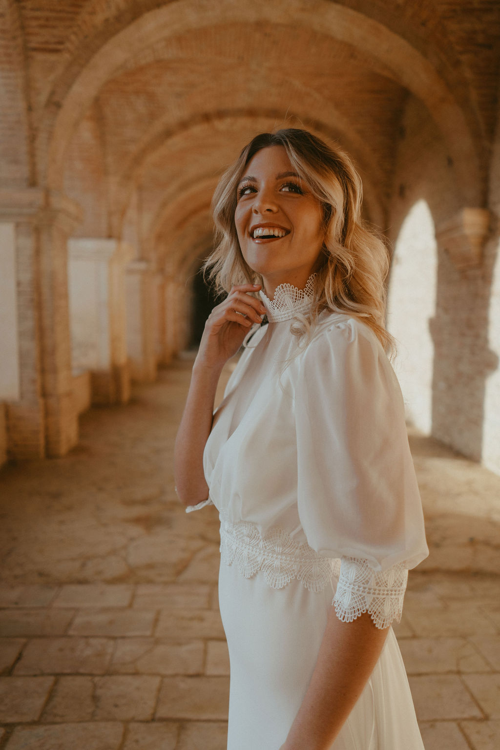 Robe de mariée modulable, traine en mousseline et guipure, collection Variations – Les Roses de Louise, Toulouse